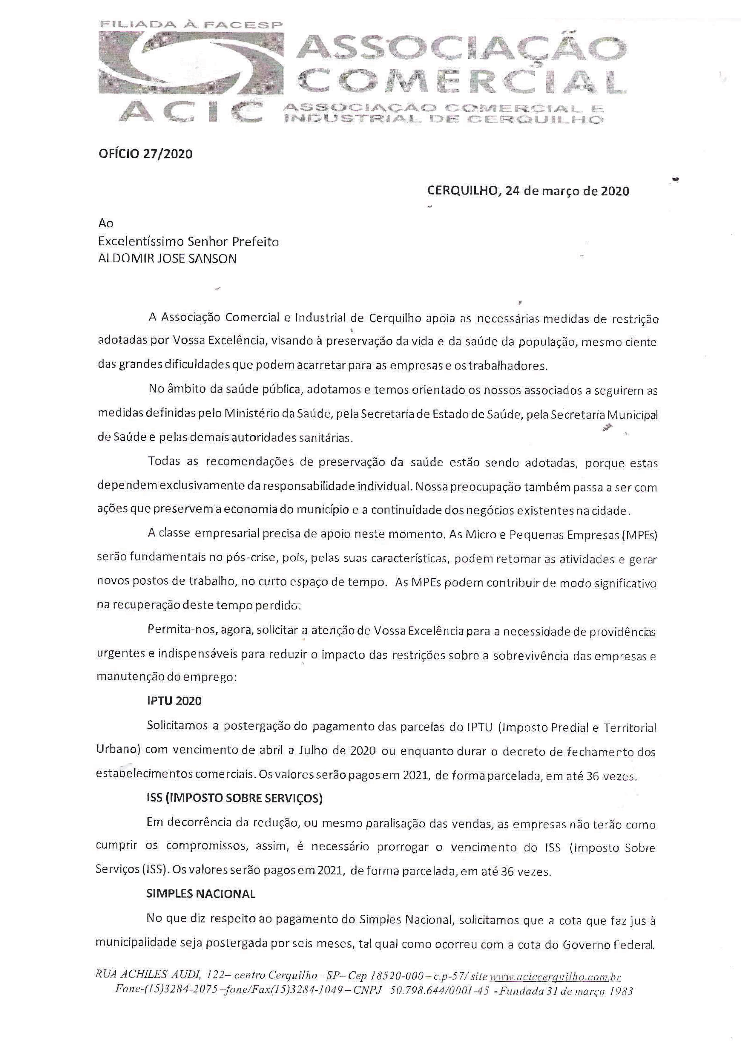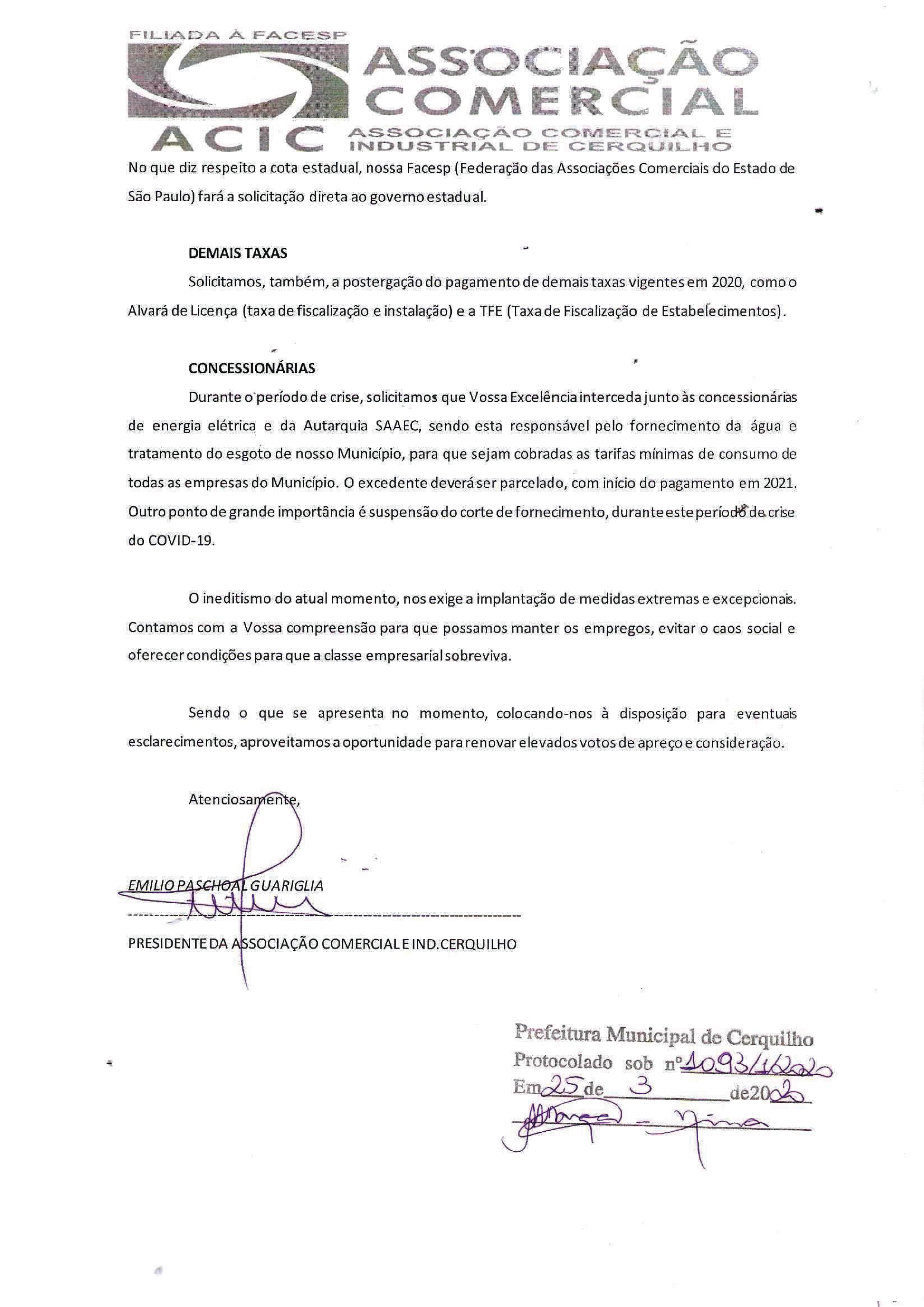 Medidas de proteção ao setor comercial e empresarial de Cerquilho